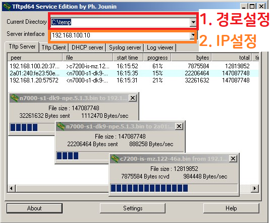 통상적으로 C:\Program Files\Tftpd64에 프로그램은 위치하여 있다.