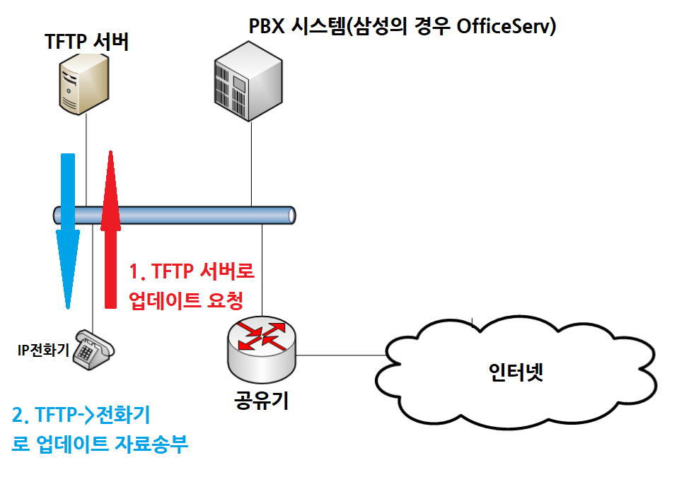 먼저 IP전화기와 펌웨어를 저장하고 있는 컴퓨터는 서로 연결될 수 있어야 한다.
